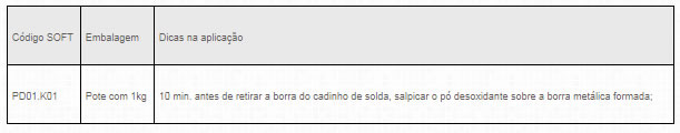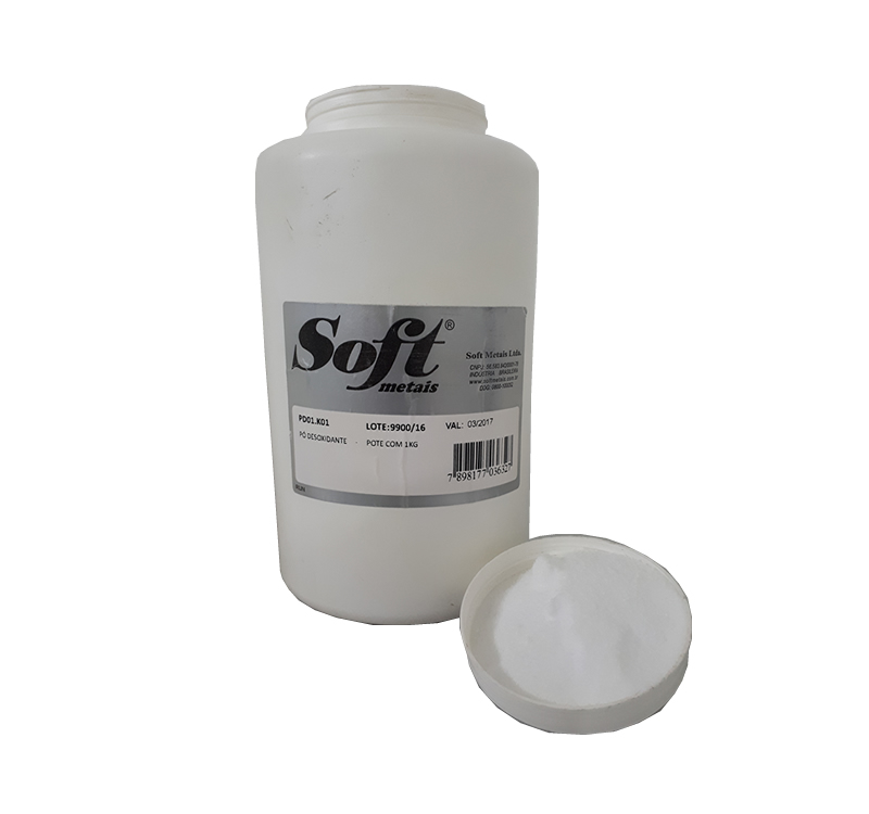 O pó desoxidante é utilizado na separação da fração metálica da borra de fundição, permitindo melhor rendimento. Deve ser usado para a limpeza do cadinho. Não é recomendado no uso diário.